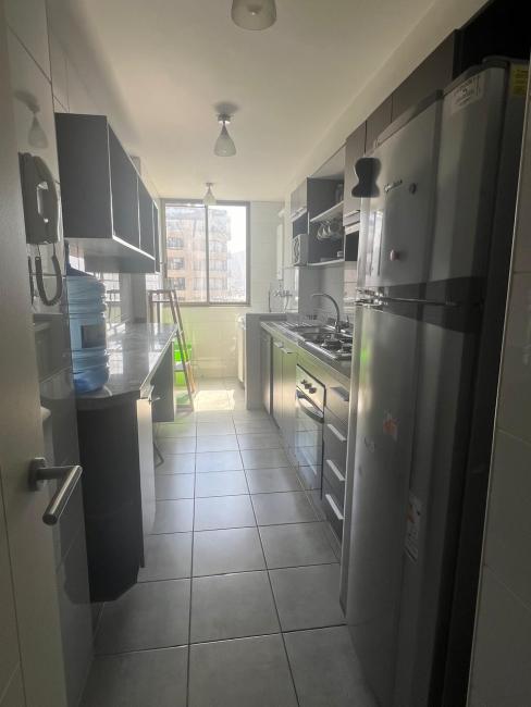 cocina amoblada y equipada, con logia y lavadero
